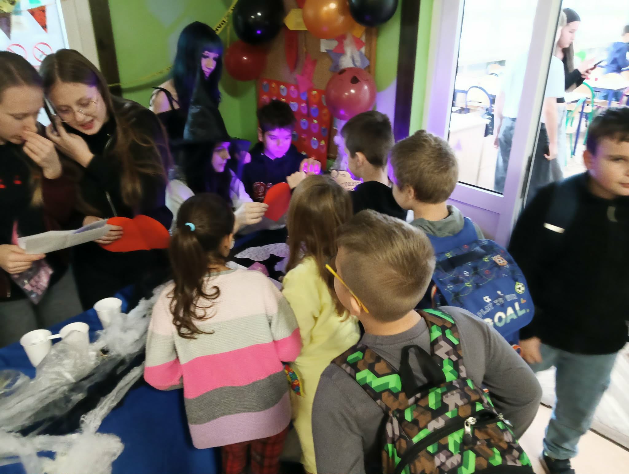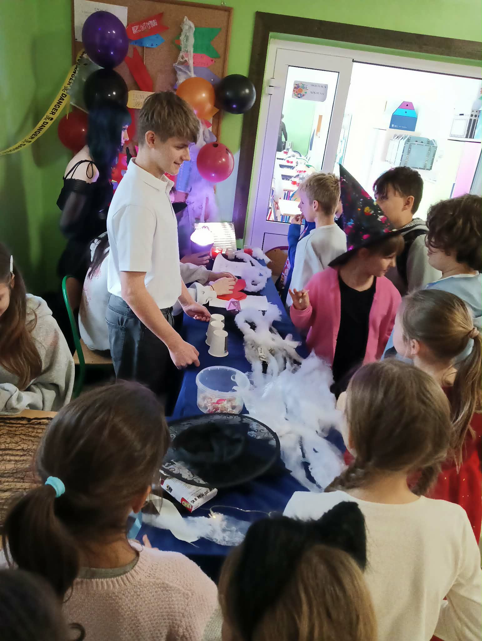 W trakcie imprezy nie zabrakło dodatkowych atrakcji – ogromnym zainteresowaniem cieszyło się malowanie twarzy, a wspaniałą atmosferę tworzyła zabawa przy muzyce, którą prowadziły dziewczęta z klas VII.