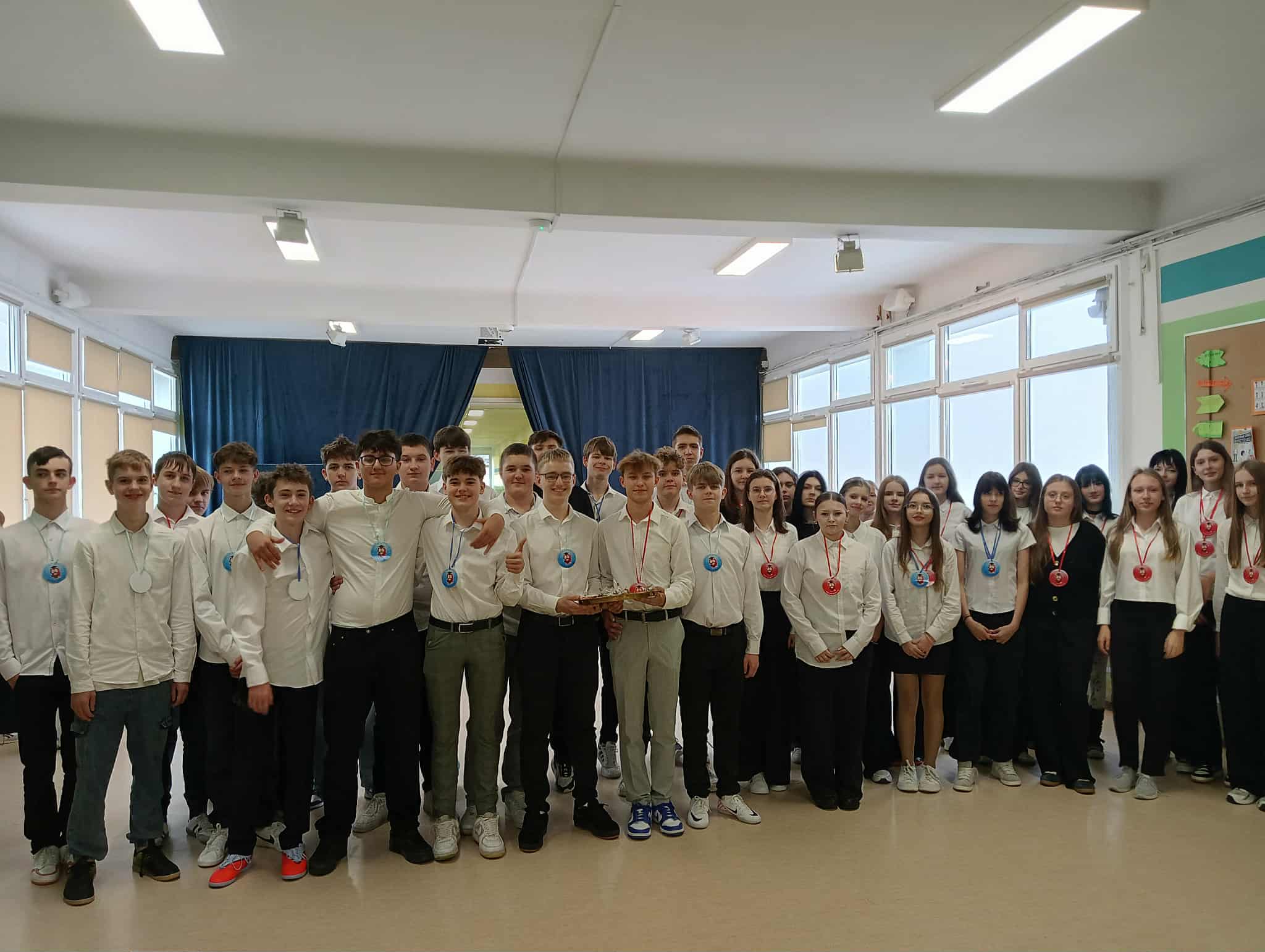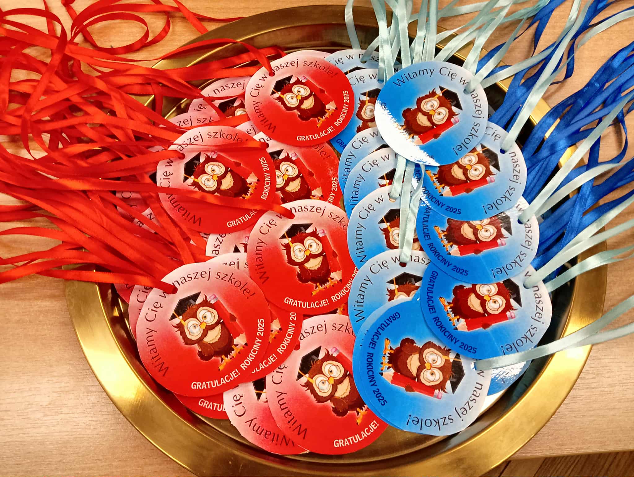 Z okazji ślubowania pierwszoklasistów uczniowie klas VIII przygotowali dla swoich młodszych kolegów i koleżanek „Dobre słowo powitania” w formie kolorowych medali.