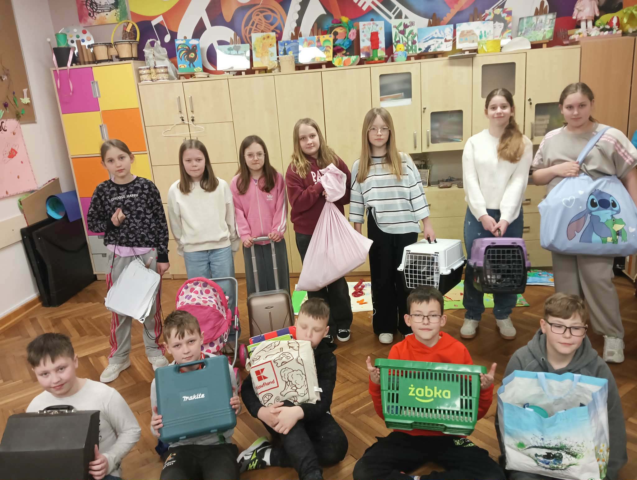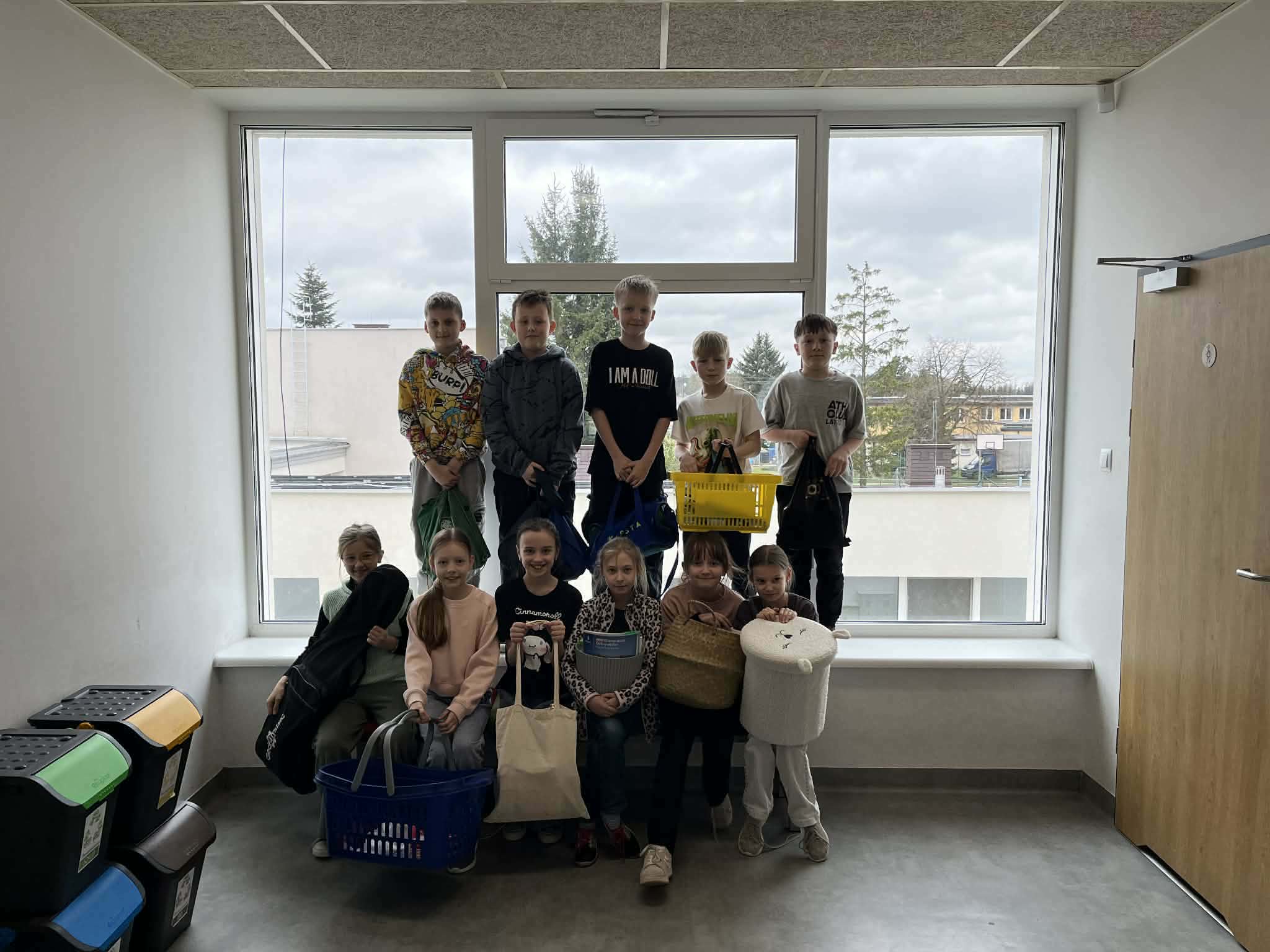 Tego dnia nasi uczniowie zamienili plecaki na inną formę pojemników, w których przynosili swoje książki, zeszyty i szkolne akcesoria. Pojawiły się kosze, walizki, wózki, kartony, futerały na instrumenty, poszewki, zabawki dla dzieci. Kreatywność i fantazja uczniów nie miała żadnych granic.