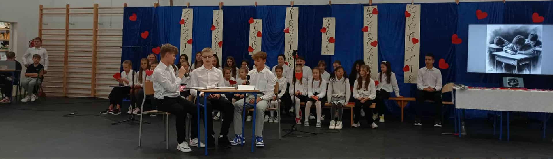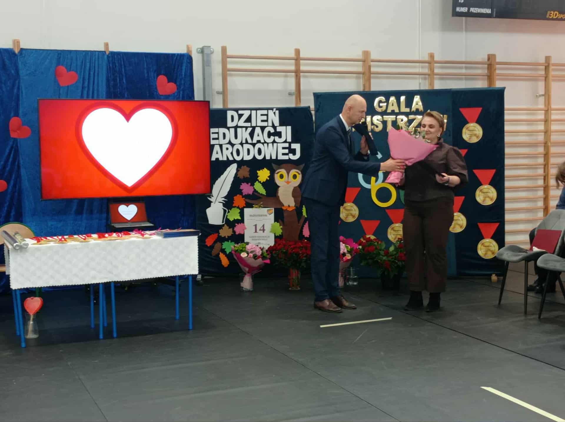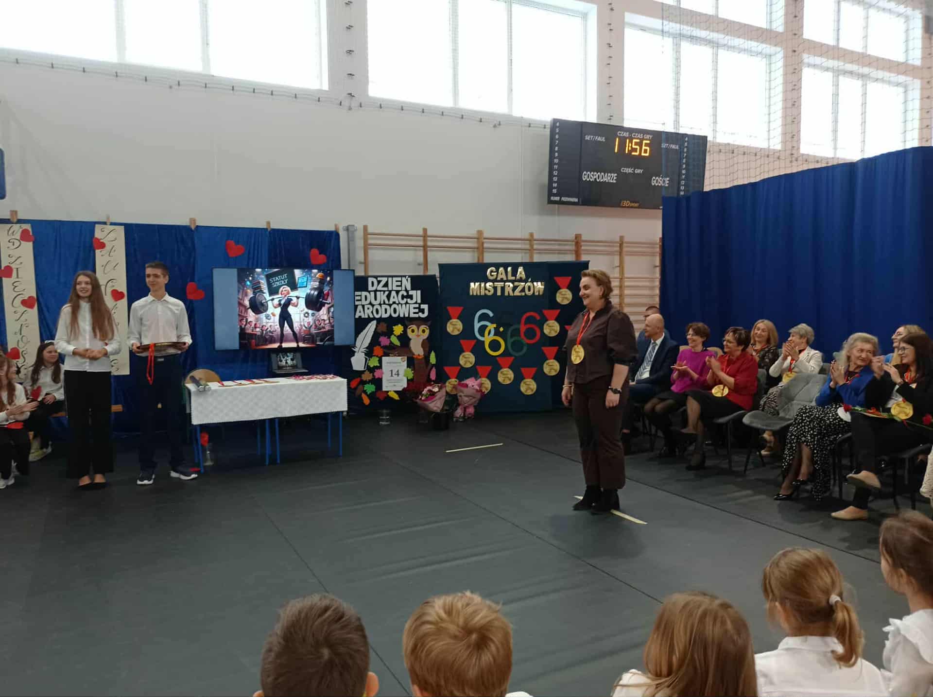 Tego dnia wszyscy uczniowie podziękowali nauczycielom oraz pracownikom szkoły za ich poświęcenie i troskę wkładaną w codzienną edukację. Atmosfera była pełna radości i wzruszeń , a sala udekorowana dobrymi słowami i motywami olimpijskimi jeszcze bardziej podkreślała wyjątkowość Dnia Nauczyciela.