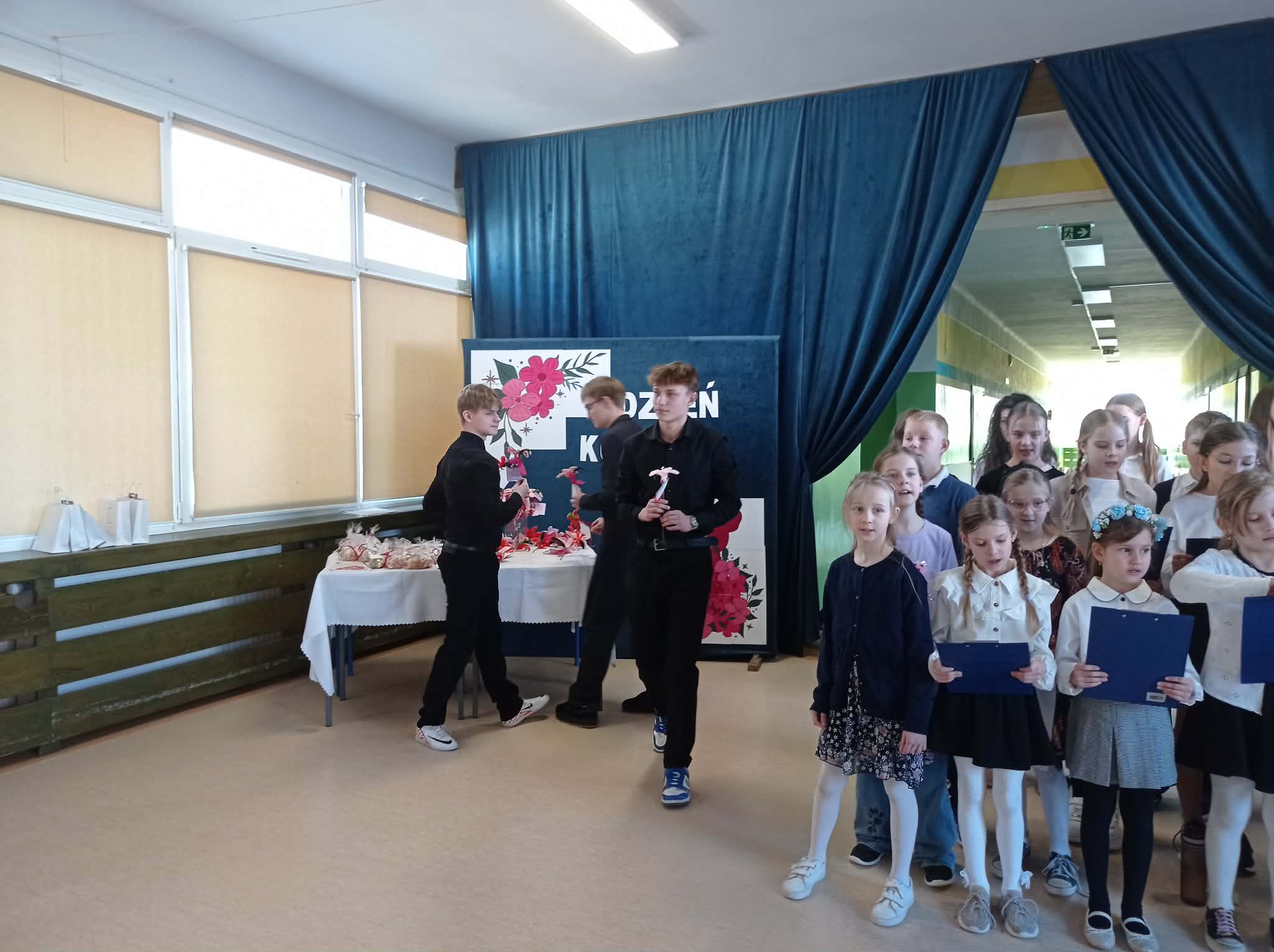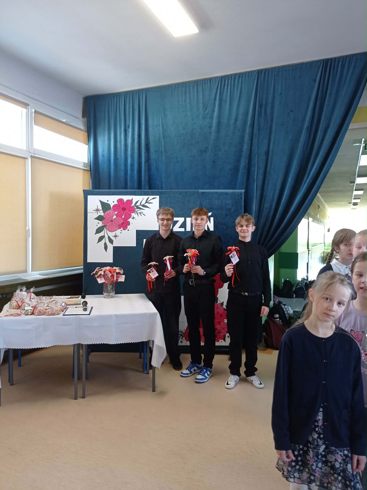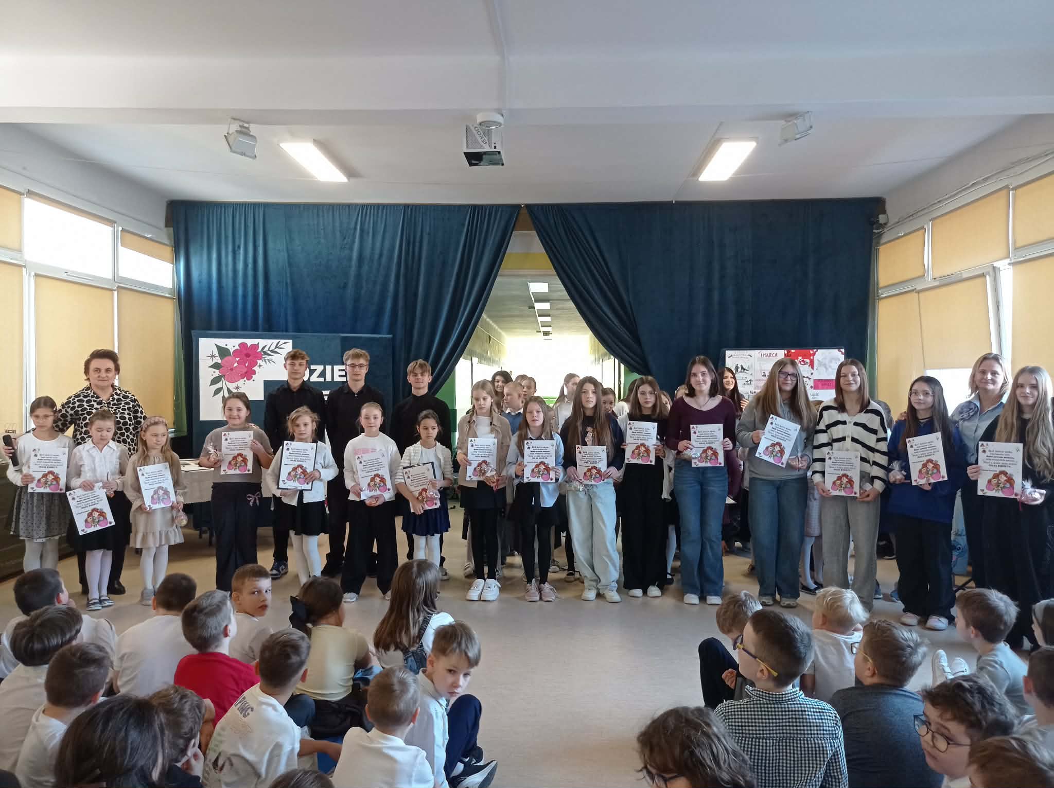 Uroczystość uświetnił także szkolny chór, który zaprezentował piosenki o tematyce związanej z Dniem Kobiet, tworząc miłą i radosną atmosferę.