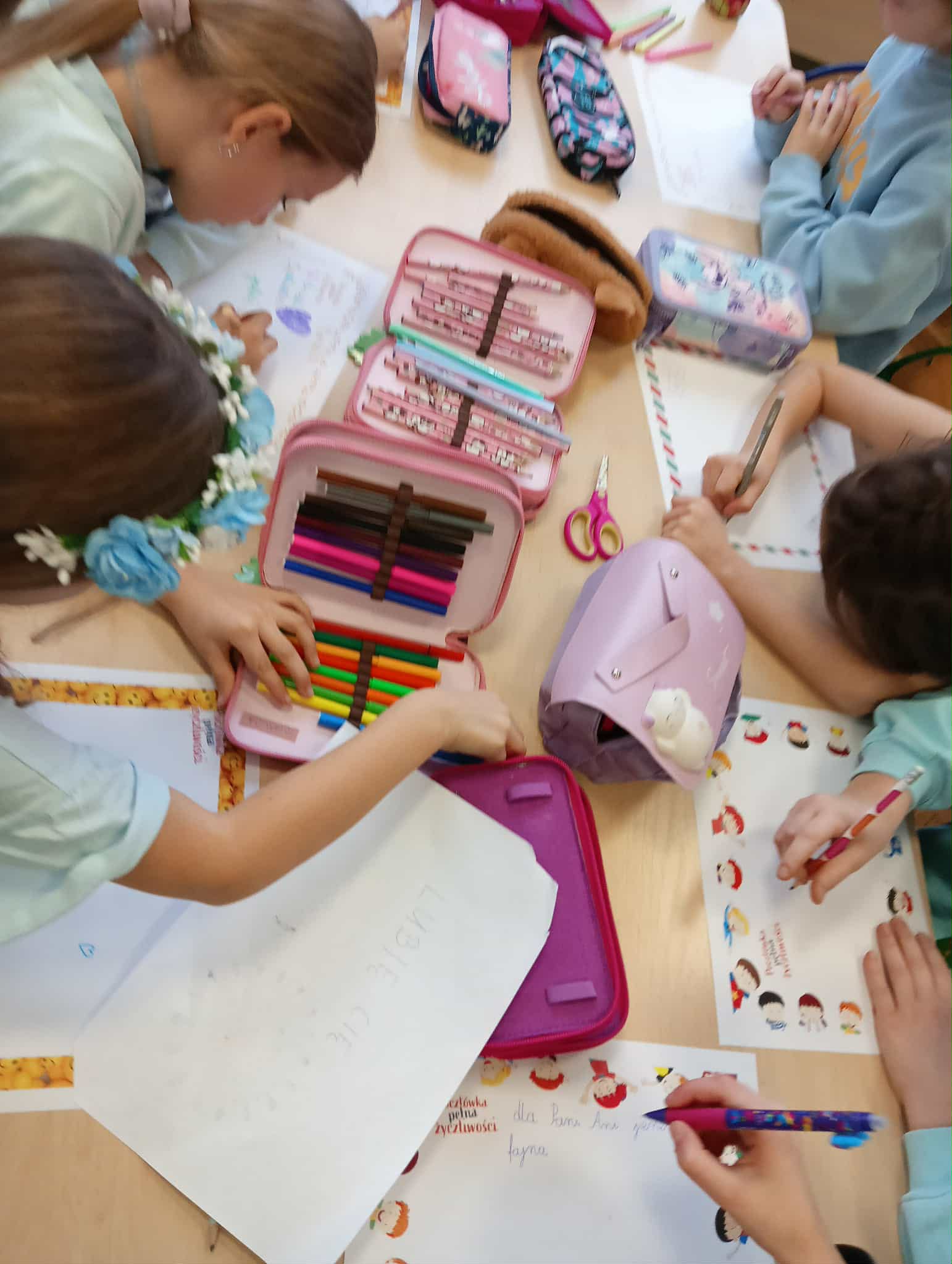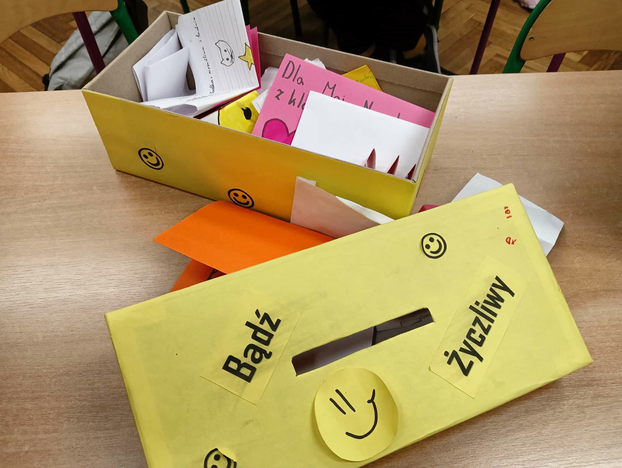 Akcja „Słowne promyki” – poczta dobrych słów cieszyła się dużym zainteresowaniem – uczniowie chętnie sięgali po kolorowe materiały i z zaangażowaniem tworzyli swoje „słowne promyki”, które następnie wrzucali do specjalnie przygotowanej skrzynki.