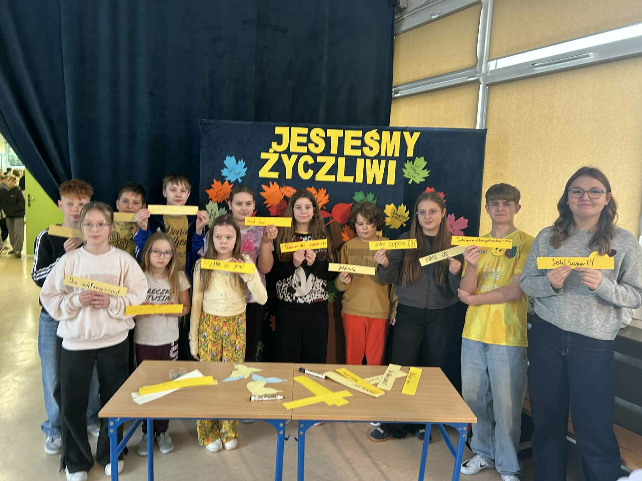 Obchody Międzynarodowego Dnia Życzliwości i Pozdrowień były nie tylko okazją do wspólnej zabawy, ale także ważną lekcją empatii, szacunku i pozytywnej komunikacji. Dzięki wspólnemu zaangażowaniu całej społeczności szkolnej atmosfera tego dnia była wyjątkowo serdeczna i radosna.
