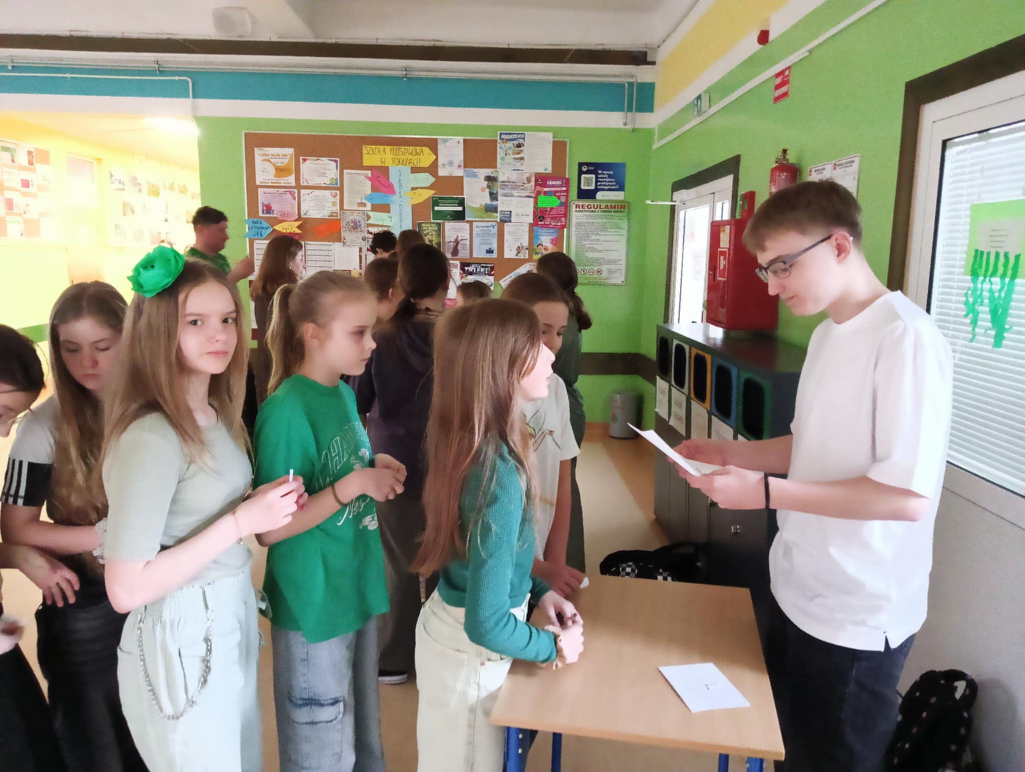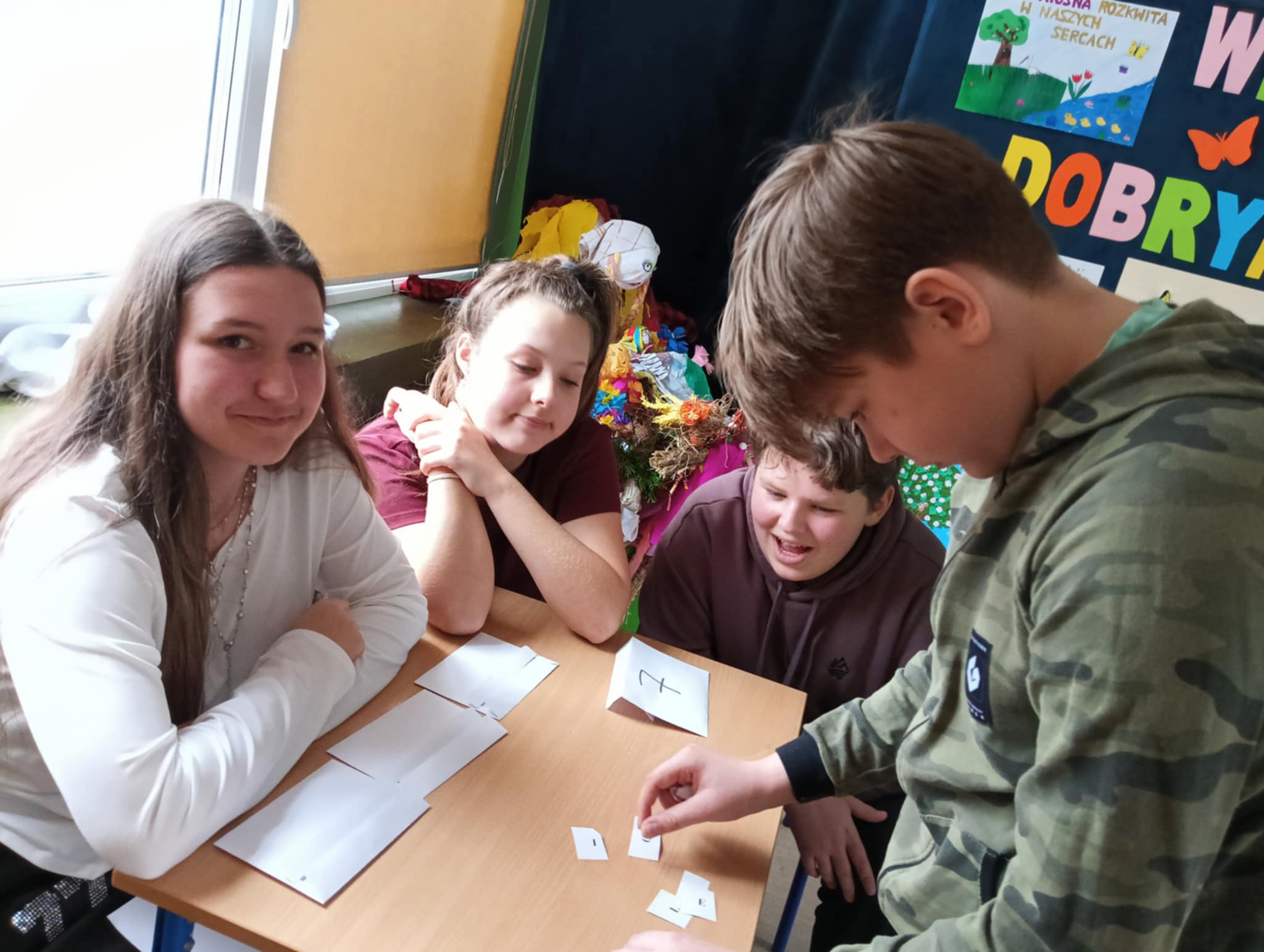 Samorząd Uczniowski przygotował również grę terenową dla klas IV–VIII „Znajdź wiosnę w szkole!”, w której uczestnicy rozwiązywali zagadki i zadania, by odszyfrować ukryte hasło.