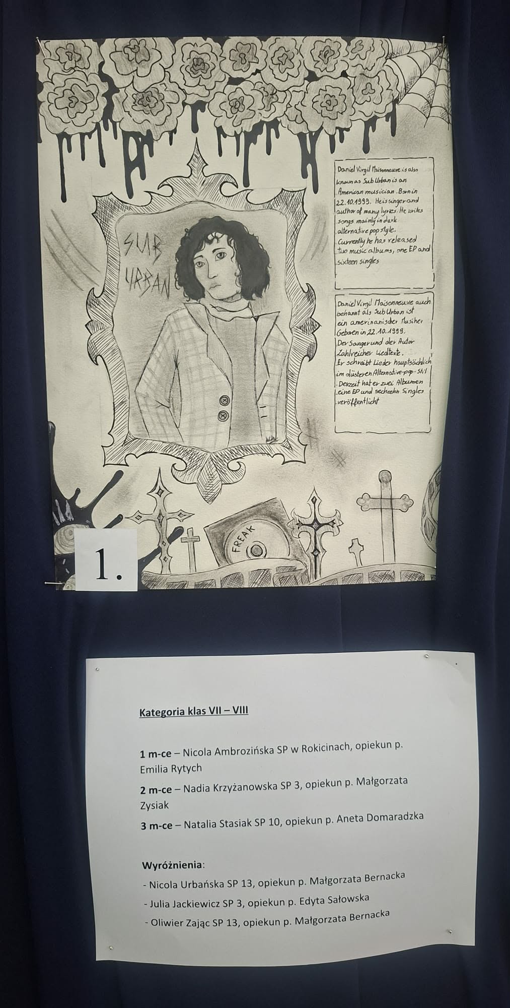 - Nicoli Ambrozińskiej z klasy 8b za zajęcie 1 miejsca w kategorii klas 7-8,