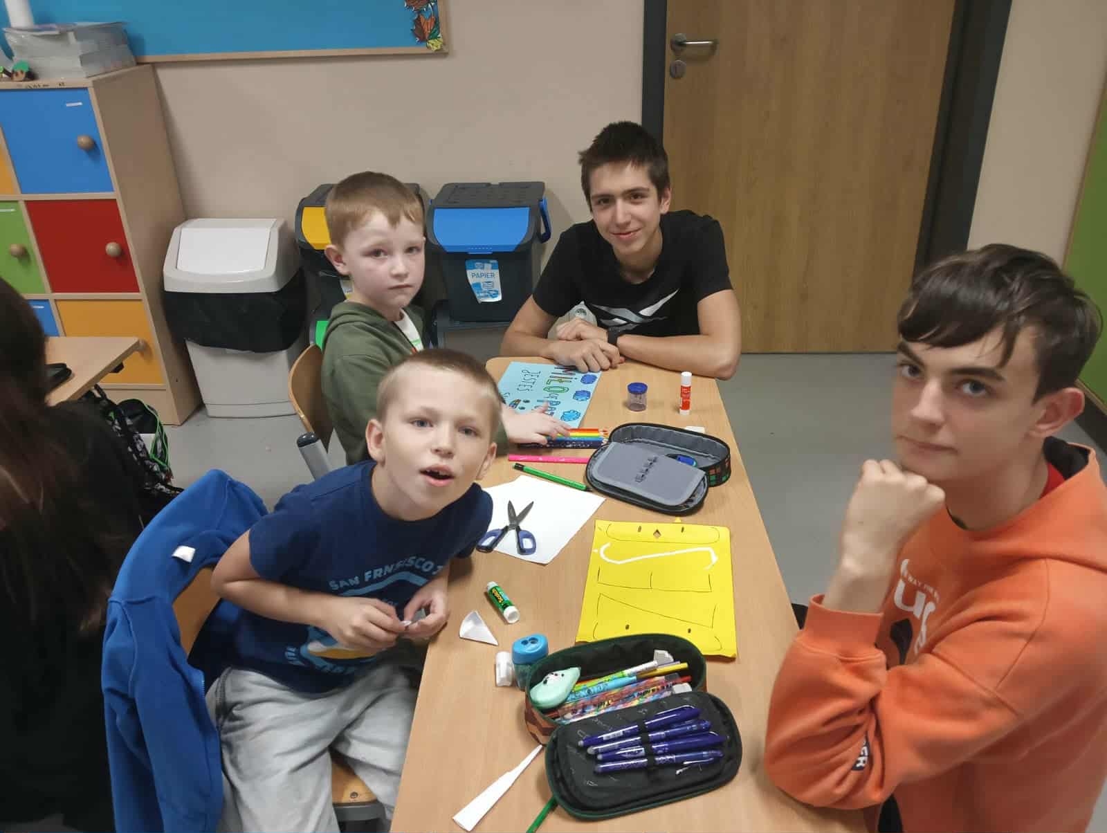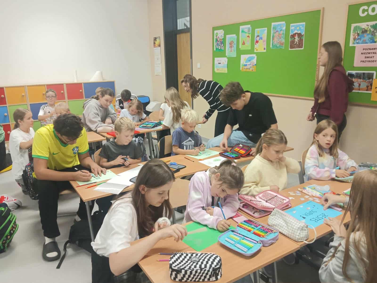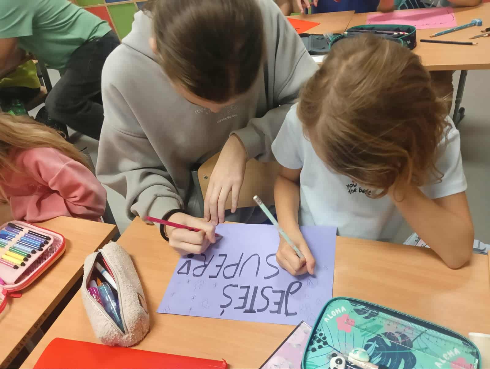 W ramach akcji “Starsza siostra, starszy brat” uczniowie klas ósmych i pierwszych wspólnie wykonywali i ozdabiali prace z pozytywnym przesłaniem.