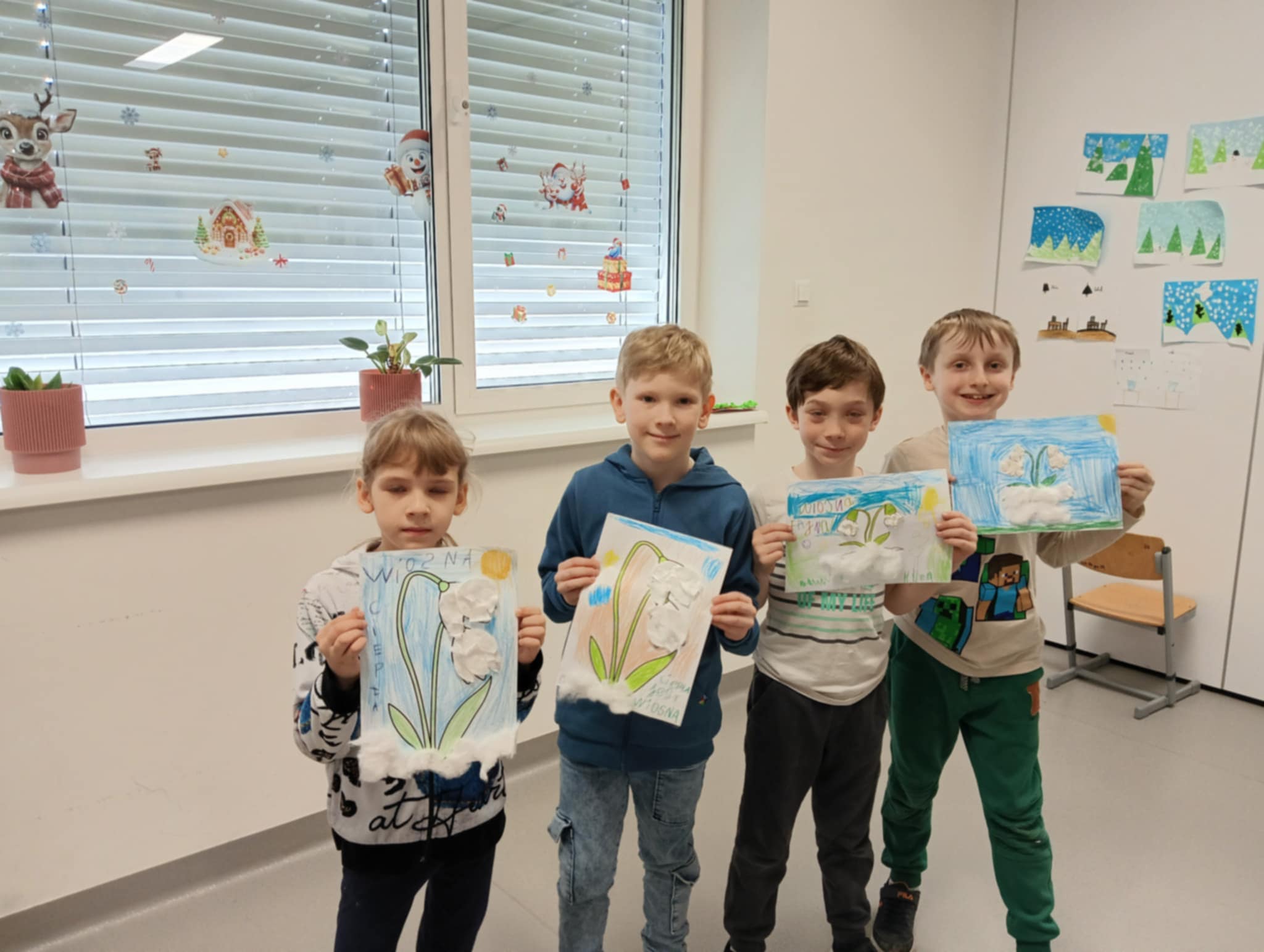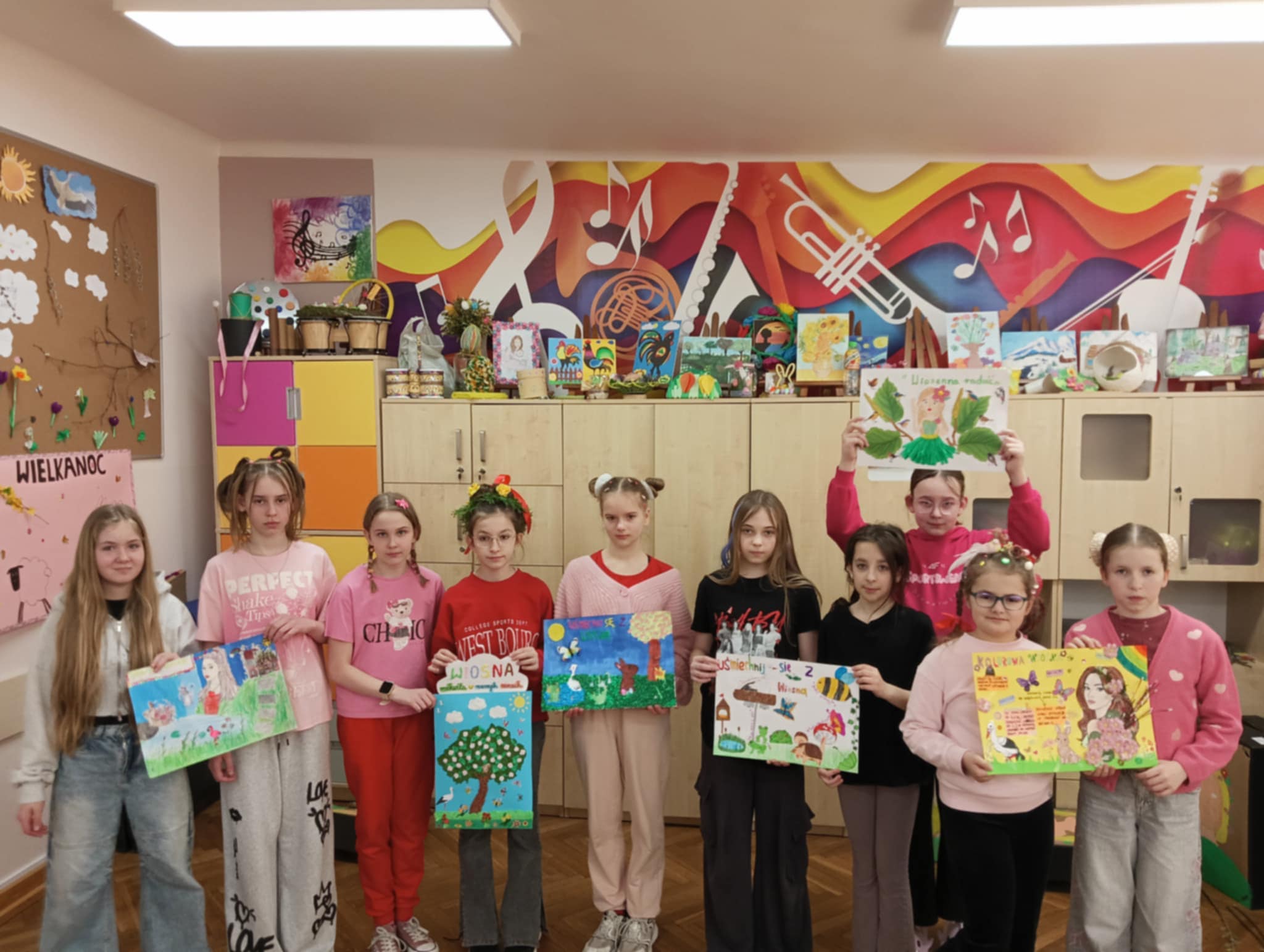 Uczniowie aktywnie uczestniczyli w zajęciach, tworząc różnorodne prace plastyczne z wiosennym przesłaniem. Stały się one wyjątkową ozdobą szkolnego korytarza, tworząc barwną, wiosenną przestrzeń, która cieszy oko całej społeczności.